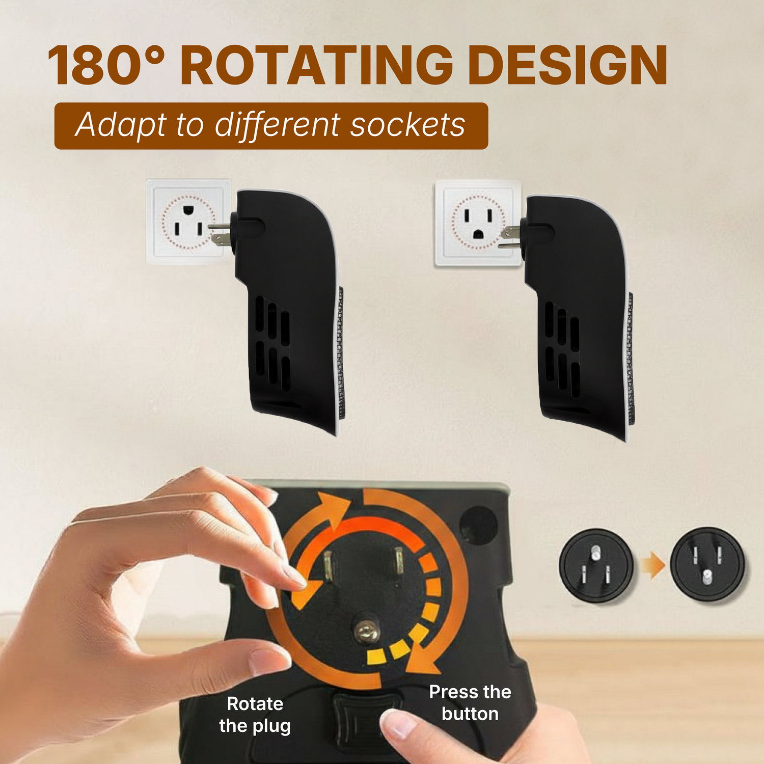 The 180° rotatable plug adapts to any socket position, eliminating awkward angles and keeping your space tidy.
